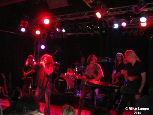 Die nächsten fast zwei Stunden sollten dann für mich eine Zeitreise in meine musikalischen Rock und Metal Anfänge werden. Auch wenn ich es heute schon fast nicht mehr wahrhaben will, aber die SCORPIONS gehörten seinerzeit mit zu meinen Heroes, und ich hab das „Tokyo Tapes“ Album vergöttert. Tja, und Uli hab ich bisher nie live spielen sehen, dafür war ich Landei damals noch viel zu jung und heute musikalisch zu weit entfernt von dem, was er gerade macht. Wahrscheinlich hätte ich mir zum Konzert auch noch ne „Tokyo Tapes Revisited“-DVD gekauft und signieren lassen, aber deren VÖ hat sich laut Uli um einen Monat nach hinten verschoben, und so startet die Tour ohne neuen Tonträger. Aber auch so wurde die Show in „Monnem“, wie der „Pälzer“ zu sagen pflegt, für mich zum nostalgischen Highlight. Wenn ich das richtig nachvollzogen habe, standen heute nur SCORPIONS-Titel auf der Setlist, an denen Ulrich, so sein Geburtsname, auch wirklich mitgeschrieben hatte. Die noch recht junge Begleitband machte einen guten Eindruck, obwohl sie rein optisch gesehen Lichtjahre von Ulis Erscheinungsbild entfernt war. Darüber, dass Uli einige der Songs immer noch selbst vertont, war ich sehr dankbar, denn mit dem aktuellen Sänger konnte ich mich in Mannheim nicht anfreunden. Mit Gesang hatte seine Perfomance recht wenig zu tun, das konnte man eher als Gekreische verbuchen. So beschränkte sich mein Fokus dann auch mehr auf den Meister himself und seine Spielkünste an und mit seinen Dean Sky Gitarren. Ok, seine langen Soli in den Songs und auch seine teils sehr experimentelle Mucke wie beim ELECTRIC SUN Stück „Just Another Rainbow“ sind gewöhnungsbedürftig, aber auch heutzutage einzigartig. Seine JIMI HENDRIX Einflüsse wird er nie los werden bzw. ablegen – warum auch? Für mich war es unterm Strich eine Erfüllung, Songs wie z. B. „We'll Burn The Sky“, „In Trance“, Fly To The Rainbow“ und „Dark Lady“ noch einmal vom Original gehört und erlebt zu haben, und das kann ich jedem SCORPIONS-Fan nur empfehlen, sich das auch noch einmal zu geben. ULI JON ROTH in der heutigen Form ist definitiv einen Konzertbesuch wert.